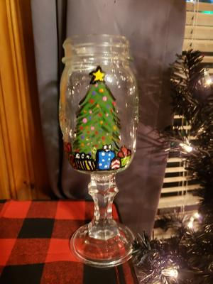 Christmas lights Hand Painted Wine Glasses - set of 4